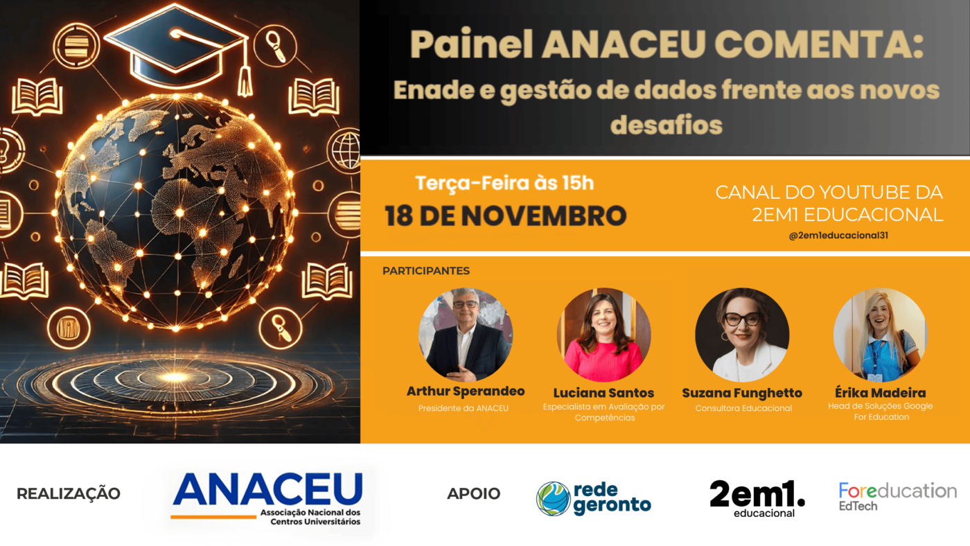 ANACEU realiza hoje webinar nacional sobre ENADE e gestão de dados em parceria com Rede Geronto, 2 em 1 Educacional e Foreducation EdTech